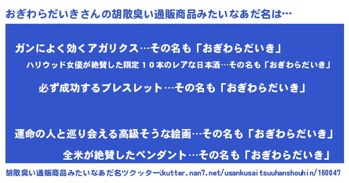 | ヒーロー風カッコイイあだ名 | 『スーパーオギワラダイキ』 |