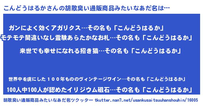 | 伝説のあだ名 | 『古より伝わる吟遊詩人こんどうはるか』 |