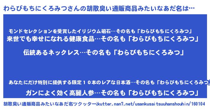 | 意味不明あだ名 | 『とにかく怪しいわらびもちにくろみつ』 |
