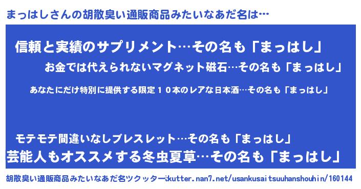 | 意味不明あだ名 | 『住所不定無職まっはし(59歳)』 |