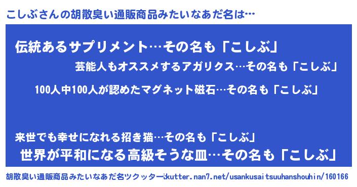 | ヘコむあだ名 | 『こしを』『なまこ酢』『こしにゅー』 |