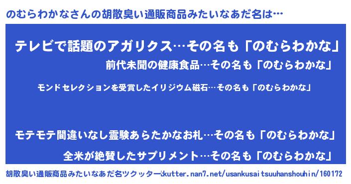 | 男性向けラノベタイトル風あだ名 | 『ノーゲーム・ノーノムラワカナ』 |