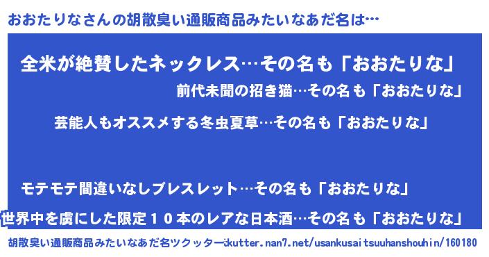 | 意味不明あだ名 | 『自称おおたりな』『永久保存おおたりな』 |