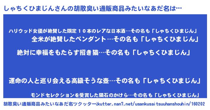 | 意味不明あだ名 | 『永久保存しゃちくひまじん』 |