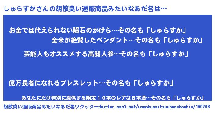 | 欧米人風あだ名 | 『アンジェラ・しゅらすか』 |