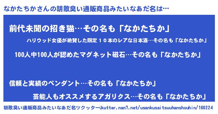 | ヘコむあだ名 | 『なかたちか(小並感)』『なかっちょ』 |