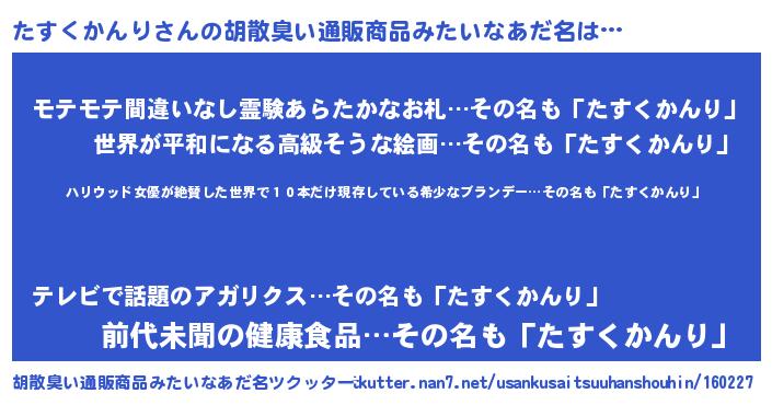 | 意味不明あだ名 | 『住所不定無職たすくかんり(86歳)』 |