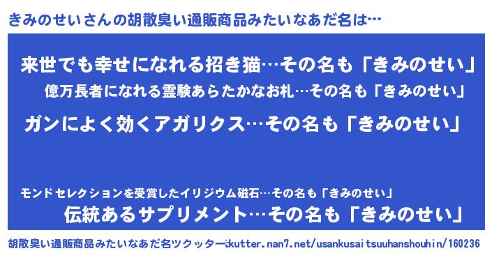 きみのせいさんの胡散臭い通販商品みたいなあだ名をツクッター!