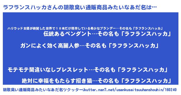 | ヘコむあだ名 | 『ラフランスハッカ(笑)』『ラフっぺ』 |