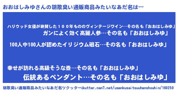| 欧米人風あだ名 | 『ダニエルおおはしみゆ』 |