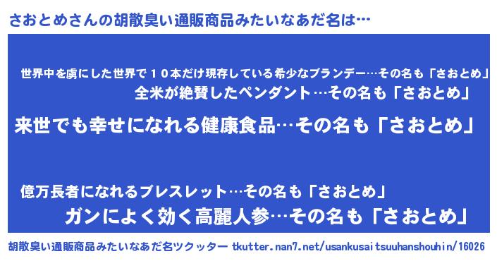| 意味不明あだ名 | 『永久保存さおとめ』『自称さおとめ』 |