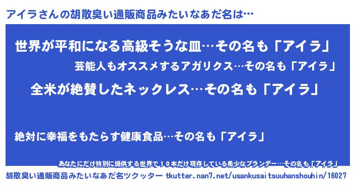 | 女子向けラノベタイトル風あだ名 | 『アイラ様がみてる』『アイラの婚約者』 |