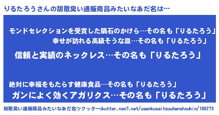 | 意味不明あだ名 | 『とにかく怪しいりるたろう』 |