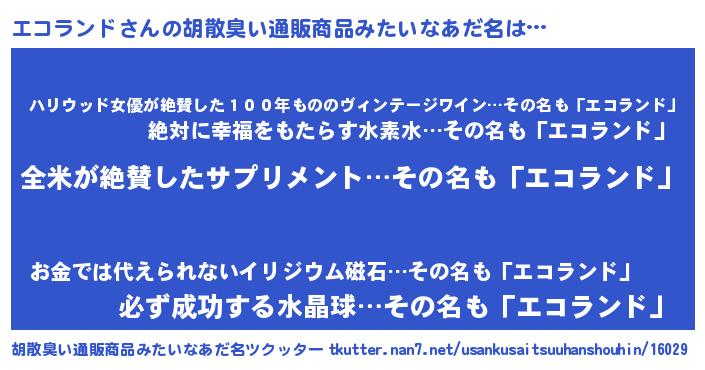 | 意味不明あだ名 | 『とにかく怪しいエコランド』 |
