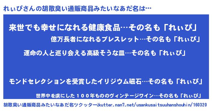 | ヒーロー風カッコイイあだ名 | 『ウルトラれぃぴマン』『ネオレィピ』 |