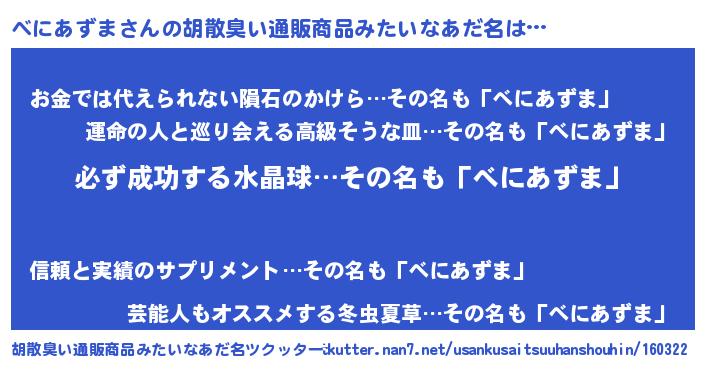 | 恥ずかしいあだ名 | 『プリティーべにあずま』『べにっちょ』 |