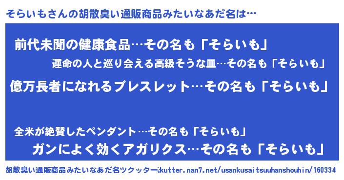 | 意味不明あだ名 | 『ペロリンそらいも』『永久保存そらいも』 |