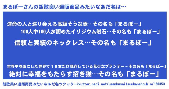 | 意味不明あだ名 | 『とにかく怪しいまるぼー』 |