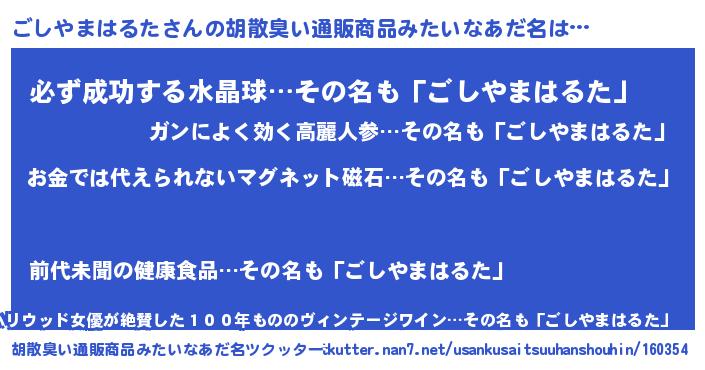 | ヘコむあだ名 | 『ごしふぇ~』『ごしやまはるた(爆)』 |