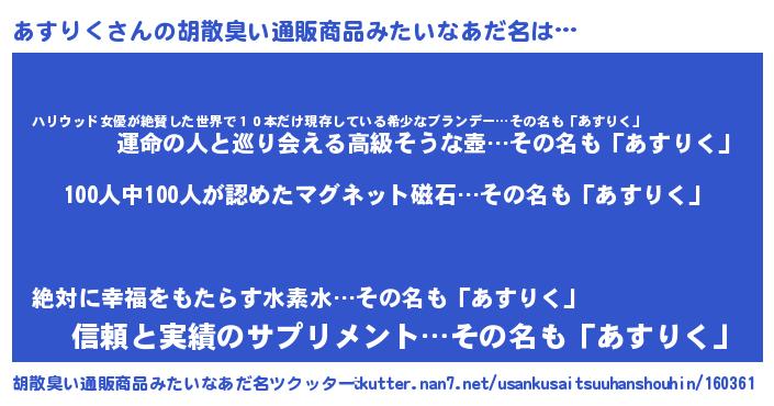 | 欧米人風あだ名 | 『アンジェラ・あすりく』 |
