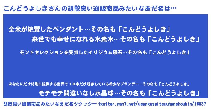 | 女子向けラノベタイトル風あだ名 | 『こんどうよしきの玉の輿計画!』 |