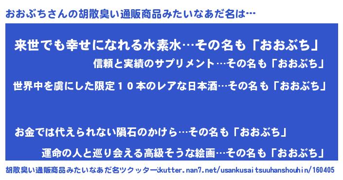 | 意味不明あだ名 | 『住所不定無職おおぶち(40歳)』 |