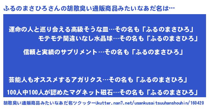 | 意味不明あだ名 | 『とにかく怪しいふるのまさひろ』 |