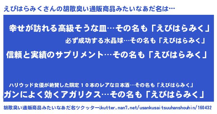 | 意味不明あだ名 | 『とにかく怪しいえびはらみく』 |