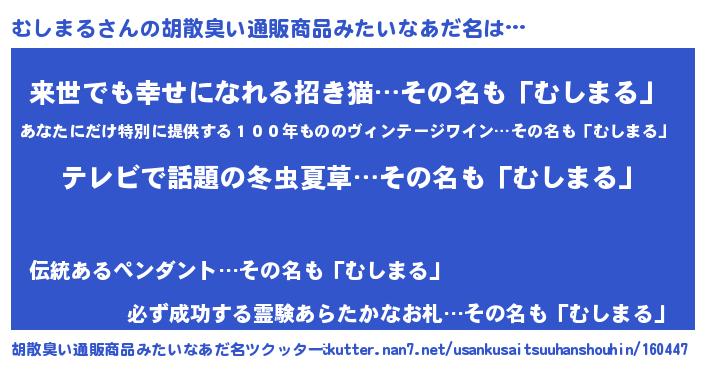| ヘコむあだ名 | 『むしまる(苦笑)』『むしふぇ~』 |