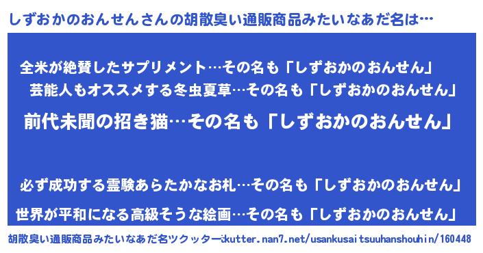 | 意味不明あだ名 | 『永久保存しずおかのおんせん』 |