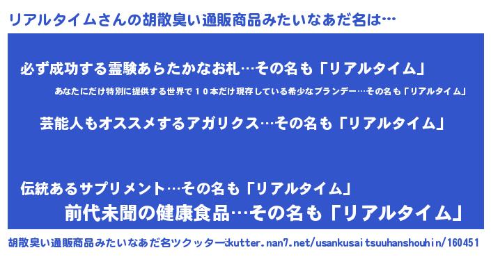 | ヘコむあだ名 | 『リアふぇ~』『リアルタイム(震え声)』 |
