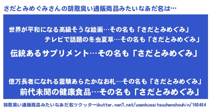 | 意味不明あだ名 | 『とにかく怪しいさだとみめぐみ』 |
