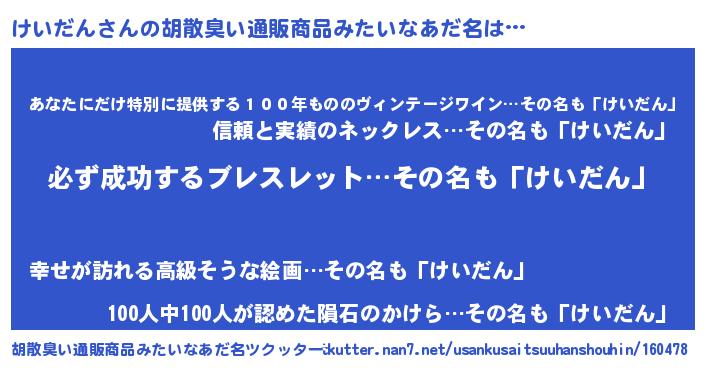 | ヘコむあだ名 | 『けいにー』『けいっちょ』『牛乳』 |