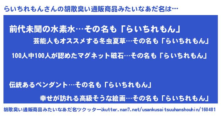 | ヘコむあだ名 | 『らいちれもん(笑)』『レバニラ』 |