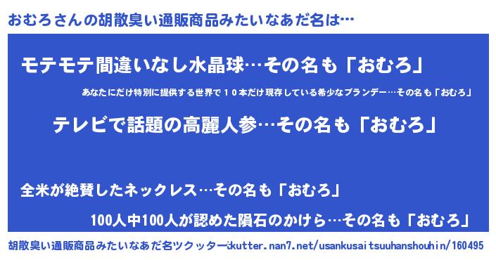| 男性向けラノベタイトル風あだ名 | 『Re:おむろから始める異世界生活』 |