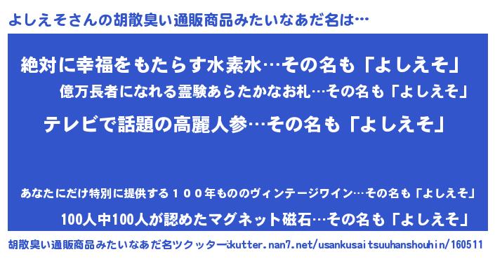 | ヘコむあだ名 | 『よしえそ(笑)』『よしっふぃ~』 |