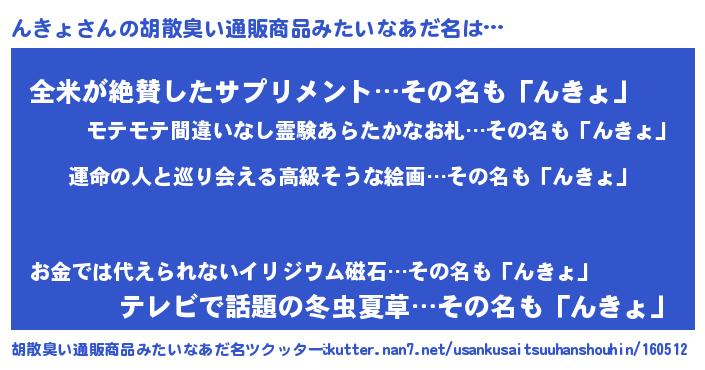 | 意味不明あだ名 | 『んきょフォーエバー』『自称んきょ』 |
