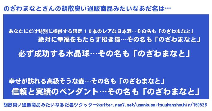 | ヘコむあだ名 | 『のざふぇ~』『のざお』『豆乳』 |