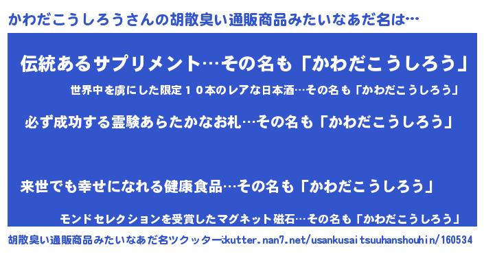 | ヒーロー風カッコイイあだ名 | 『スーパーカワダコウシロウ』 |