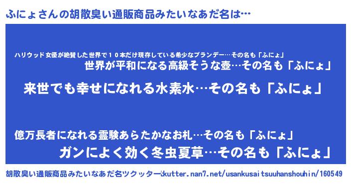 | 意味不明あだ名 | 『永久保存ふにょ』『自称ふにょ』 |