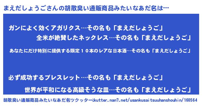 | 意味不明あだ名 | 『住所不定無職まえだしょうご(59歳)』 |