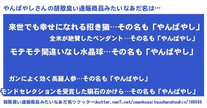 | ヘコむあだ名 | 『やんふぇ~』『やんばやし(笑)』 |