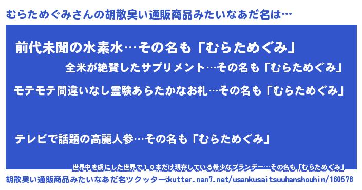 | ヘコむあだ名 | 『むらっふぃ~』『むらためぐみ(笑)』 |