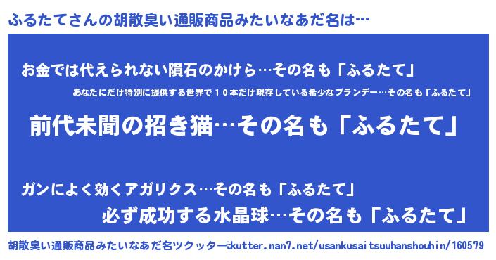 | ヘコむあだ名 | 『ふるたて(笑)』『ふるもー』 |