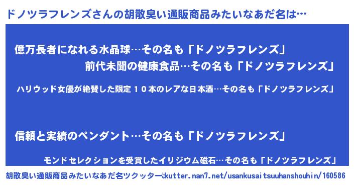 | ヘコむあだ名 | 『ドノもー』『ドノツラフレンズ(笑)』 |