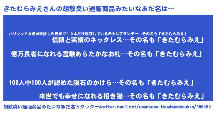 | 恥ずかしいあだ名 | 『プリティーきたむらみえ』『きたちん』 |