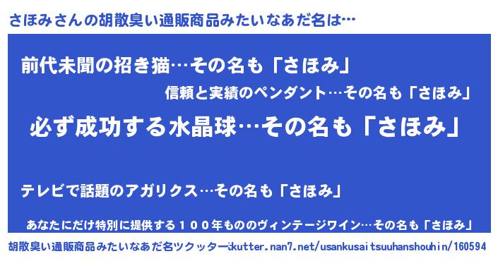 | ヘコむあだ名 | 『さほにゅー』『さほみ(笑)』 |