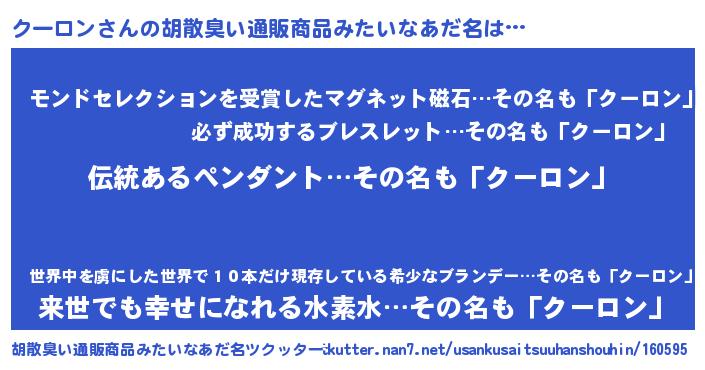 | 意味不明あだ名 | 『とにかく怪しいクーロン』 |