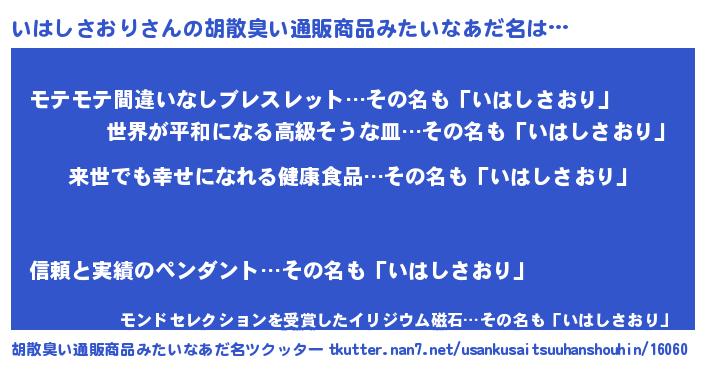| 恥ずかしいあだ名 | 『いはちん』『プリティーいはしさおり』 |