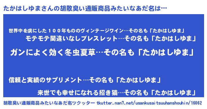 | 意味不明あだ名 | 『自称たかはしゆま』 |